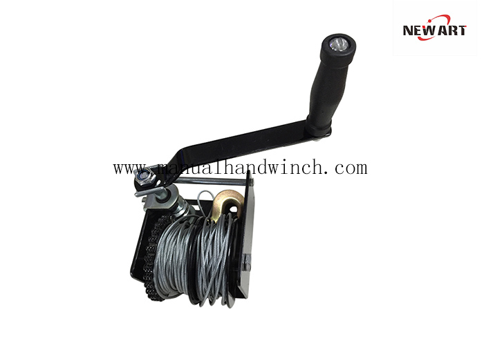 Worm gear winch allows for better load control and features a reinforced frame, comfort-grip handle. Worm gear provides load holding capability